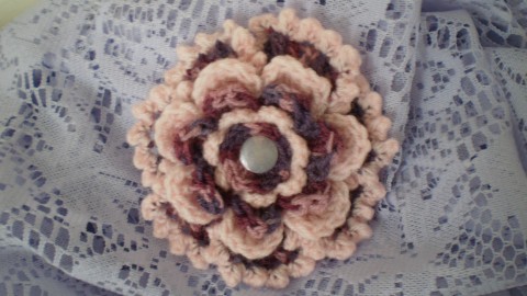 Háčkovaná kytička z akrylové příze - brož se zapínáním na spínací špendlík..
