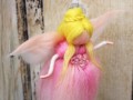 Něžná a jemná andělka má bohatě zdobený pas a krásně vypracovaný účes. Šaty i křídla jemně růžové-více odstínů s bílou.