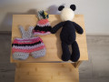 Ručně háčkovaný medvídek s čepicí a kalhotky o velikosti 25 cm. Háčkováno z příze Alize baby a vyplněné dutým vláknem. Lze prát. Medvídek má pohyblivé končetiny a obličej má vyšitý. Je vhodný i pro malé děti.