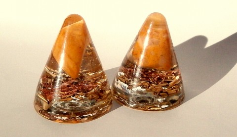 Orgonit obsahuje více druhů kovových špon, křišťál a různé druhy polodrahokamů ( dle programování ), velmi kvalitní čirou pryskyřicí bez příměsí ( používá se i ve zdravotnictví)