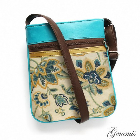 Použitá koženka je v tyrkysové a hnědé barvě.