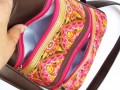 Na přední straně jsou dvě praktické, plně funkční kapsy na zip z krásné látky s motivem bublinek, kterou lemují stříbrné pásky. Vnitřek kabelky je na zip, vypodšitý saténem a má ještě všitou kapsičku na doklady. Použitá koženka je v černé barvě.
