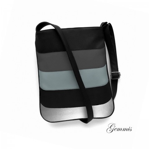 Použitá koženka je v barvách černé, dvou odstínů šedé a stříbrné.
