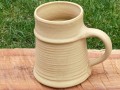 Ručně točený korbel v pískové barvě s jemnými výkvěty.