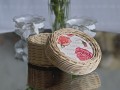 průměr dna 12 cm, dno krabičky s malými růžičkami, výška krabičky včetně víčka cca 8,5 cm, bez víčka cca 6,5 cm, pleteno z přírodního pedigu, lakováno bezbarvým matným lakem s atestem pro dětské hračky i styk s potravinami