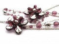 Výrazným prvkem náhrdelníku jsou dvě větší květiny z fialových lístků se stříbrným zdobením, které na vrchní straně ponechává z fialové barvy jen mřížky, spodní strana je čistě fialová. Květina je doplněna fialovými kapičkami, středovým stříbrným broušeným korálkem a několika drobnými fialovými korálky kolem středu. korálků. Průměr květiny je 4 cm.
