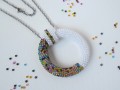Přívěsek ve tvaru donutu vytvořen časově náročnou technikou háčkování s korálky - korálek po korálku postupně přiháčkovány k sobě na bavlněném kordonetu. Korálky české výroby Precioza.