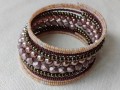 Vyroben výhradně z českých skleněných korálků na nerezovém paměťovém drátu (10 otoček). Kombinace odstínů hnědé, béžové a metalických efektů.