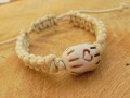 Shamballa náramek z pevné šňůrky režné barvy. Střed náramku je keramický korálek.