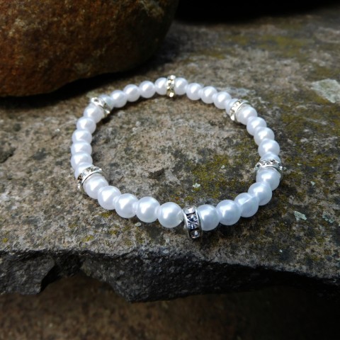 Náramek z bílých perliček