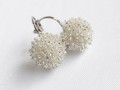 Jemné, něžné, velmi elegantní jsou tyto náušnice, které tvoří obšívané dřevěné půlkuličky, připevněné na náušnicových základnách a následně nadvakrát obšité tím nejdrobnějším vysoce kvalitním japonským TOHO rokajlem, čirým se stříbrným průtahem, díky kterému se náušnice nádherně třpytí. Základny jsou z bižuterního kovu s rhodiovanou úpravou. Po obšití mají náušničky průměr cca 1,5 cm.