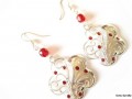 Náušnice - květy s červ. kamínky