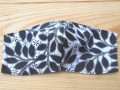 Dvouvrstvá rouška o šířce cca 24 cm a výšce cca 14 cm z látky bílé s černými lístky složené ze 100% bavlny a s navlečenou kulatou gumičkou za uši jejíž délku si sami upravíte a lze ji vyměnit, protože je navlečena v tunýlku. Kulatá gumička dle aktuální nabídky.