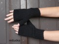 Ručně pletené návleky z pěkné černé příze.Celková délka 19cm, šířka v prstové části 7 cm, délka od palce k prstům 6 cm, měřeno v klidu. Velmi dobře padnou na ruce. Palce mají anatomický tvar. Materiál je příjemný na omak, nekouše. Délka rantlu 6 cm.