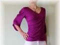 Triko z materiálu viskoza/elastan,výstřih do V ,který dělá hezký dekolt,z bočního dílu řasení,3/4 rukáv s průstřihem.Na přání i úzký rukáv-napište do objednávky.Ilustrační barva ostružinová-vyberte si svou ve fotogalerii.