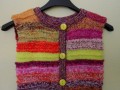 Kojenecká ručně pletená vestička, velikosti 80-86, délka 33cm, šířka 32 cm. Materiál: 60% merino, 20% akryl, 10% vlna, 10% bavlna.