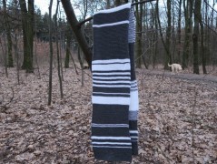 Háčkovaný šátek bílo-šedo-černý 550 Kč